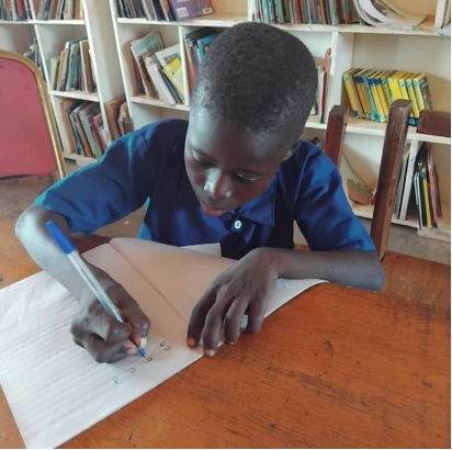 Today, Minu is in Basic Six and has made remarkable progress. He is now able to recognize and write alphabet letters independently, read simple sentences, write basic words and short sentences with guidance, and respond more actively during lessons.